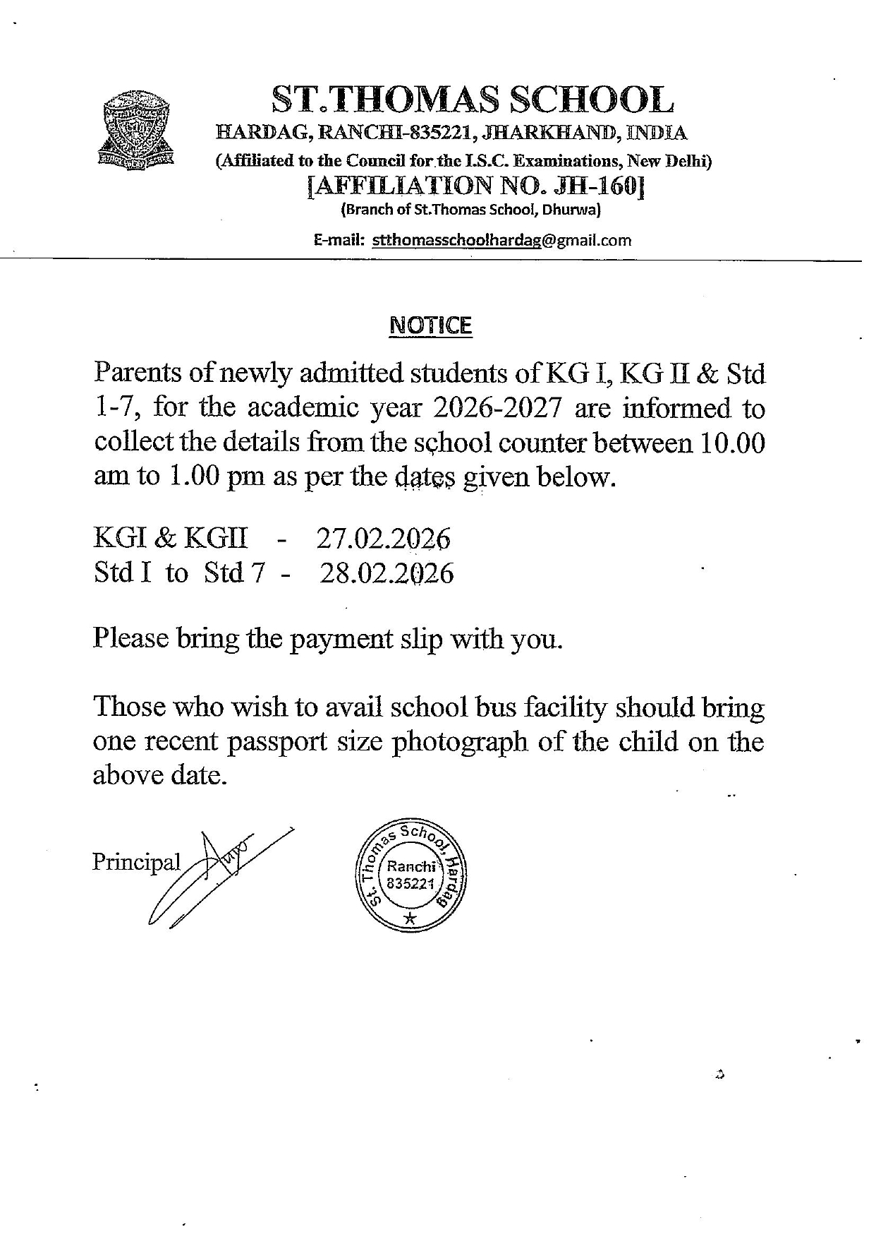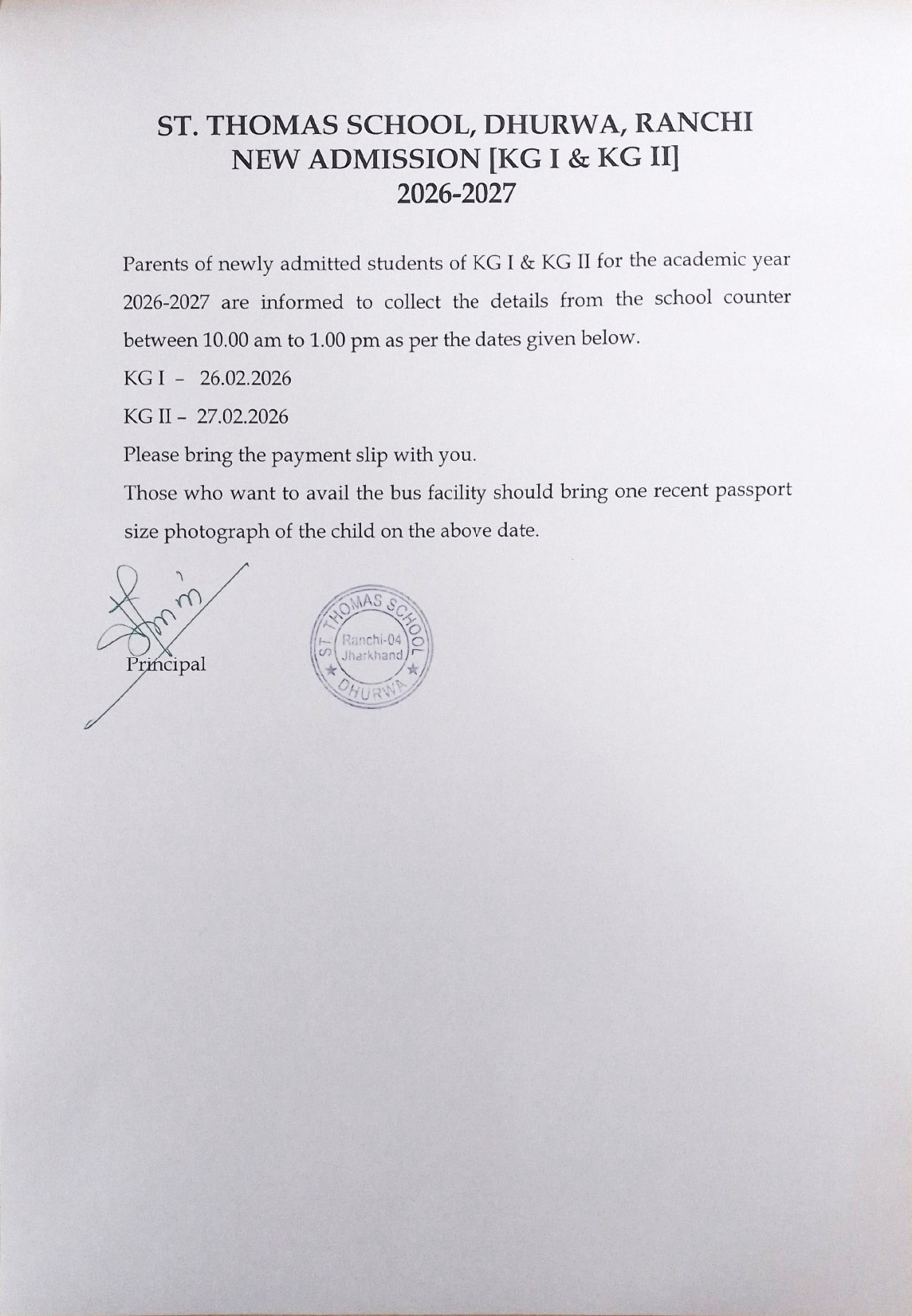 ▶ Admission Notice [KG-I & KG-II] for Session 2026-27 St. Thomas School Dhurwa◀ Admissions Open 2026-27- Please Contact Hardag School Office. ▶ Admission Notice [KG-I & KG-II] for Session 2026-27 St. Thomas School Hardag◀