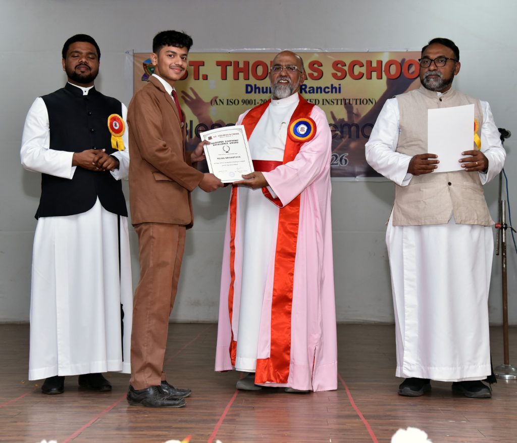 The ceremony was graced by Bishop Secretary, Very Reverend Daniel Thomas, as the Chief Guest, Principal St.Thomas School, Dhurwa, Rev. Anix Johnson, Principal St.Thomas School , Hardaag, Rev.Ashwin Jacob, Adminstrator, St.Thomas School, Kuli, and Vice Principal, St.Thomas School,Dhurwa. Mrs.Jessey Jacob.