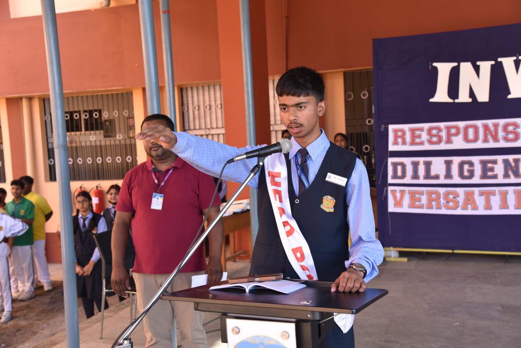 The newly elected Head Boy, along with all council members and monitors, then took the oath, pledging to uphold the values of the institution and perform their duties with sincerity and dedication.