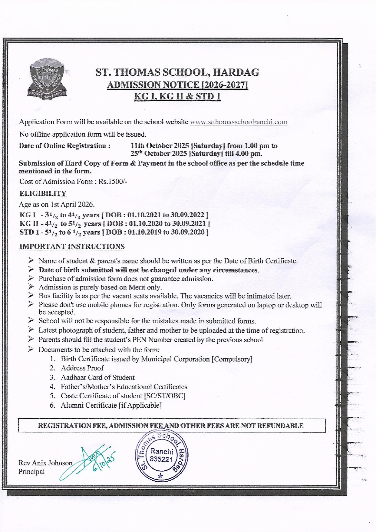 St. Thomas School Ranchi, is a premier educational institute established in the year 1973..The school provides value added education to pupil’s from KG 1 to class X in a congenial environment with all the modern infra structure facilities including E-learning.